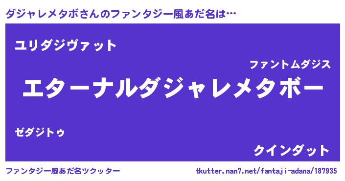 | 意味不明あだ名 | 『ダジャレメタボフォーエバー』 |