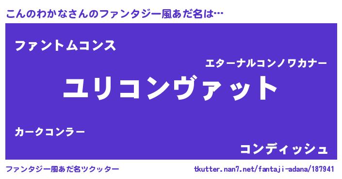 | 男性向けラノベタイトル風あだ名 | 『コンノワカナスレイヤー』 |