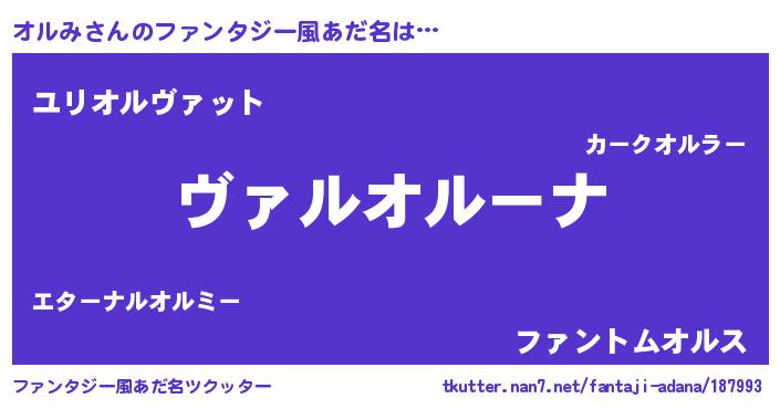 | 男性向けラノベタイトル風あだ名 | 『この素晴らしい世界にオルみを!』 |