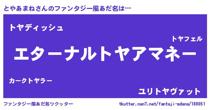 | 意味不明あだ名 | 『とやあまねフォーエバー』 |
