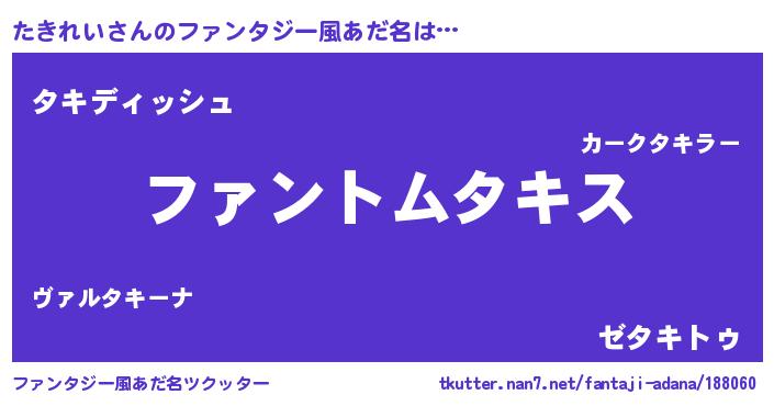 | 女子向けラノベタイトル風あだ名 | 『たきれい様がみてる』『闇のたきれい』 |