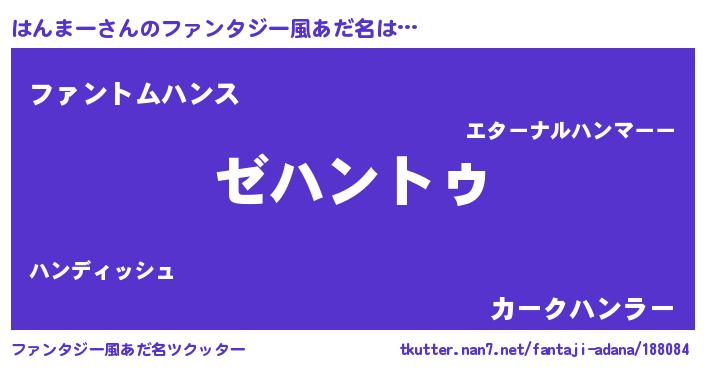 | 男性向けラノベタイトル風あだ名 | 『Re:はんまーから始める異世界生活』 |