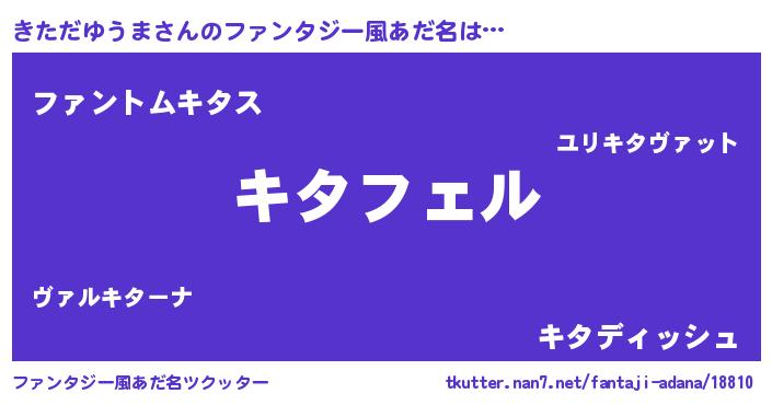 | 男性向けラノベタイトル風あだ名 | 『きただゆうまの憂鬱』 |