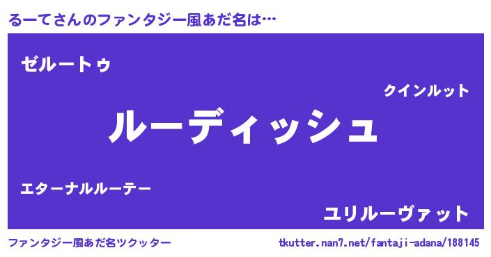 | 意味不明あだ名 | 『永久保存るーて』『自称るーて』 |