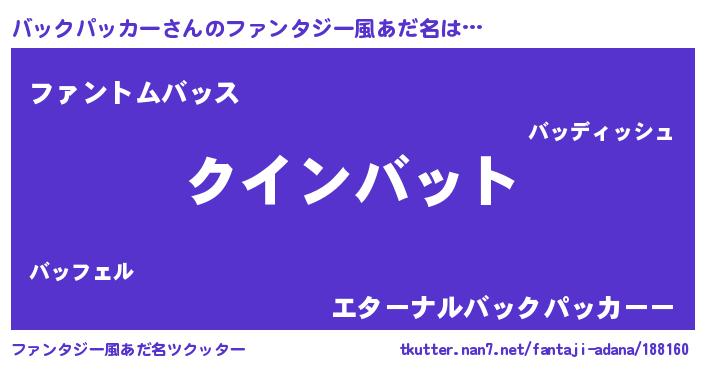 | 欧米人風あだ名 | 『アンジェラ・バックパッカー』 |