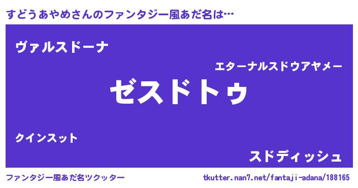 | 意味不明あだ名 | 『自称すどうあやめ』 |