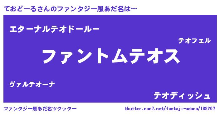| 胡散臭い通販商品みたいなあだ名 | 『信頼と実績のサプリメント…その名も「ておどーる」』 |
