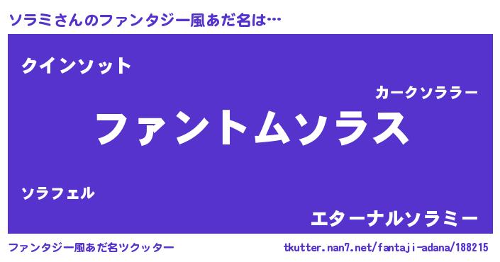 | ヒーロー風カッコイイあだ名 | 『魔戒騎士ソラ』『天空の使者ソラミ』 |