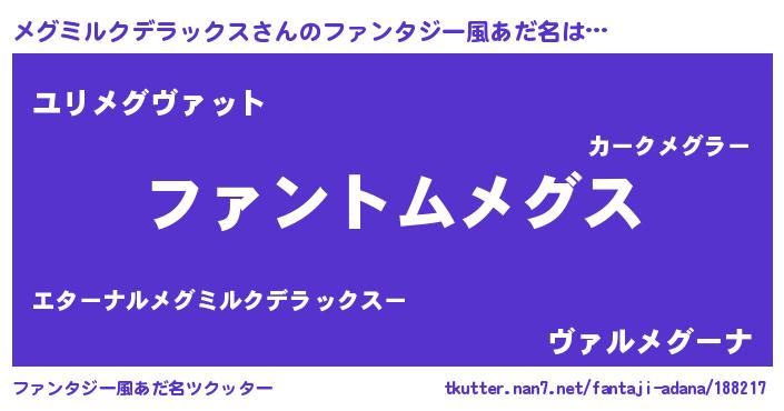| 意味不明あだ名 | 『とにかく怪しいメグミルクデラックス』 |