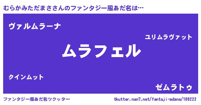 | 男性向けラノベタイトル風あだ名 | 『むらかみただまさの憂鬱』 |