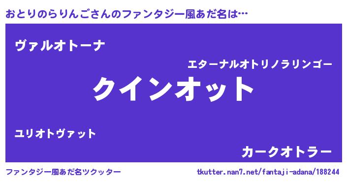 | 欧米人風あだ名 | 『ダニエルおとりのらりんご』 |