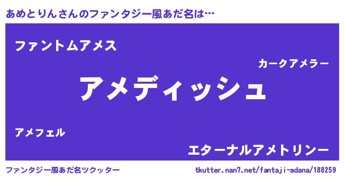 | ヒーロー風カッコイイあだ名 | 『ネオアメトリン』『魔戒騎士アメ』 |