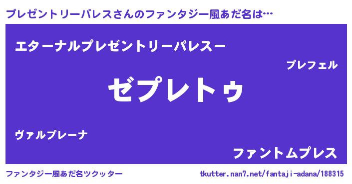 | 意味不明あだ名 | 『自称プレゼントリーパレス』 |