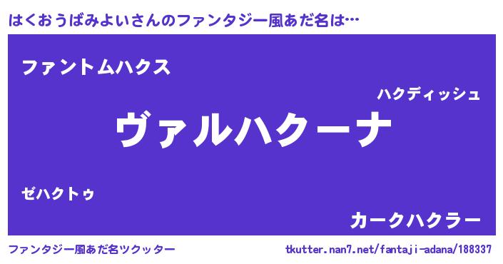 | 欧米人風あだ名 | 『アンジェラ・はくおうばみよい』 |