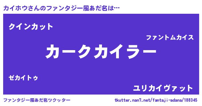 | ヒーロー風カッコイイあだ名 | 『愛の使者カイホウ』『暗黒騎士カイ』 |