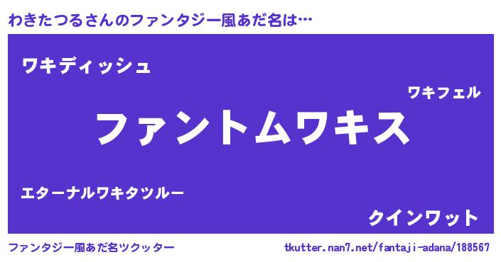 | ポケモン風あだ名 | 『ヒワキタツル』『ゼニワキ』 |