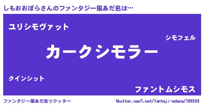 | 男性向けラノベタイトル風あだ名 | 『うちのしもおおぼらが世界を掌握している!』 |