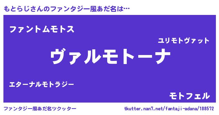 | 男性向けラノベタイトル風あだ名 | 『魔弾の王ともとらじ』『もとらじの憂鬱』 |