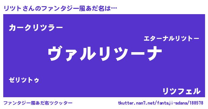 | 男性向けラノベタイトル風あだ名 | 『この素晴らしい世界にリツトを!』 |