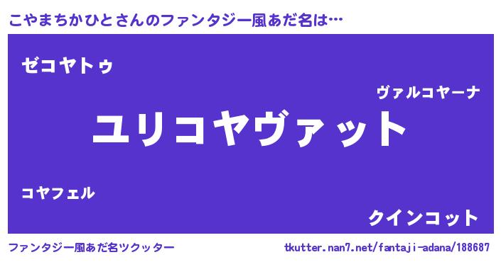 | 男性向けラノベタイトル風あだ名 | 『コヤマチカヒトスレイヤー』 |