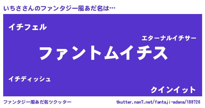 | 胡散臭い通販商品みたいなあだ名 | 『信頼と実績のサプリメント…その名も「いちさ」』 |