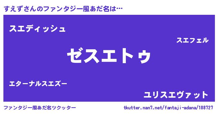 | ポケモン風あだ名 | 『スエセウス』『ゼニスエ』 |