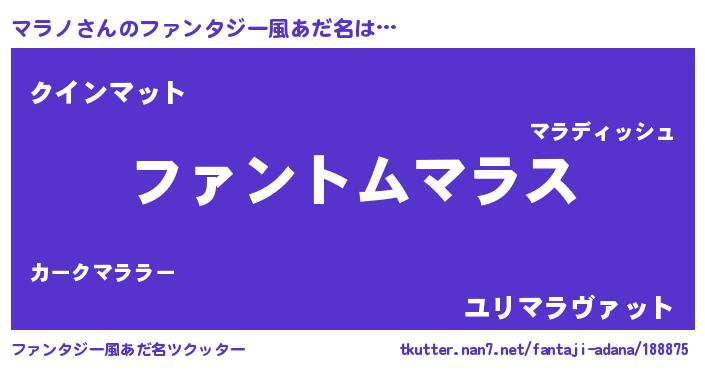| ヒーロー風カッコイイあだ名 | 『天弓騎士マラ』『慈愛の使者マラノ』 |
