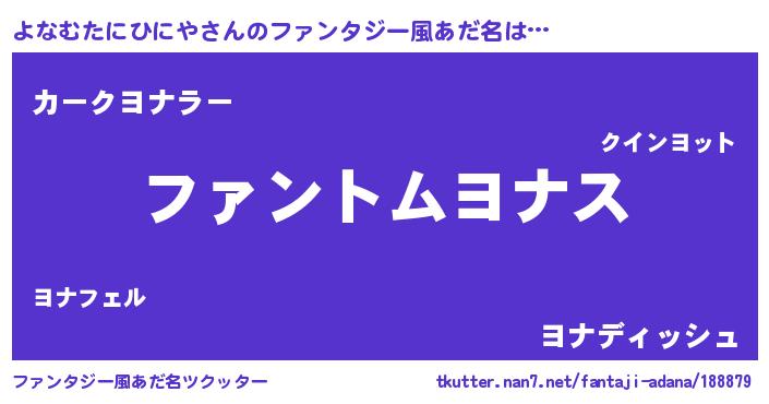 | ポケモン風あだ名 | 『ヨナゴンZ』『ヒヨナムタニヒニヤ』 |