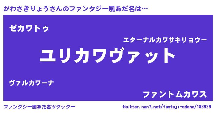 | 男性向けラノベタイトル風あだ名 | 『かわさきりょう~年齢イコール彼女いない歴の魔法使い~』 |