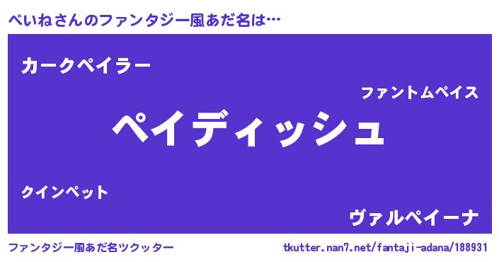 | 意味不明あだ名 | 『永久保存ぺいね』『ペロリンぺいね』 |