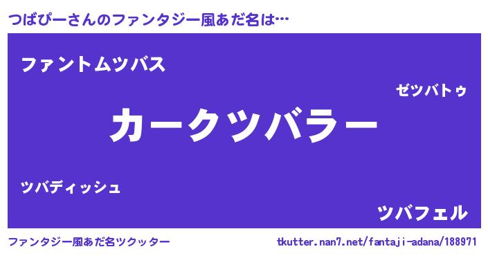 欧米人風あだ名 | 『つばぴー・ステッグマイヤー』 |