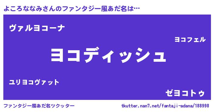 | ヘコむあだ名 | 『よころななみ(遠い目)』『よこもー』 |
