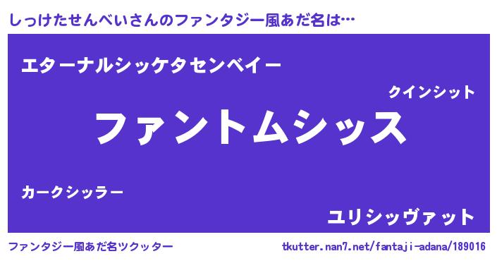 | 女子向けラノベタイトル風あだ名 | 『しっけたせんべい様がみてる』 |