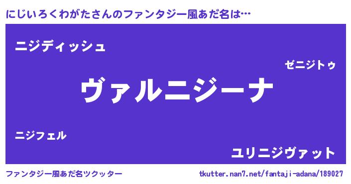 | ポケモン風あだ名 | 『ニジゴンZ』『ニージイ』『ゼニニジ』 |