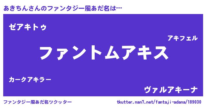 | ヒーロー風カッコイイあだ名 | 『銀牙騎士アキ』『究極戦士アキチン』 |