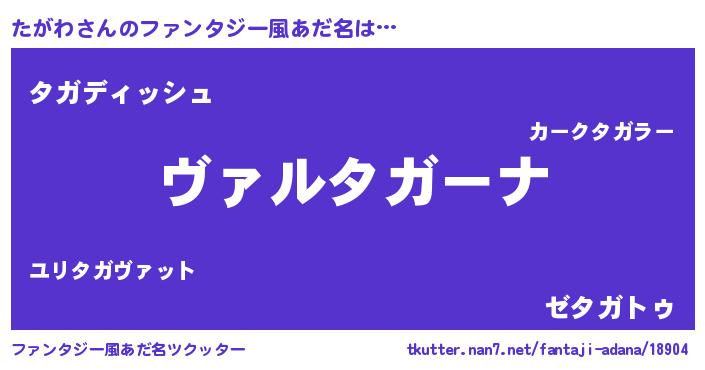 | 男性向けラノベタイトル風あだ名 | 『この素晴らしい世界にたがわを!』 |