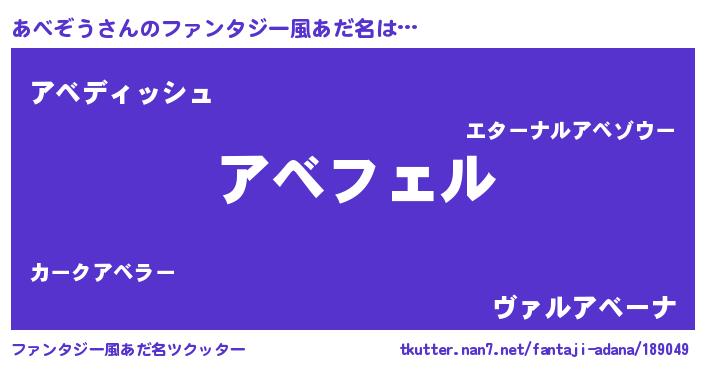 あべぞうさんのファンタジー風あだ名をツクッター!