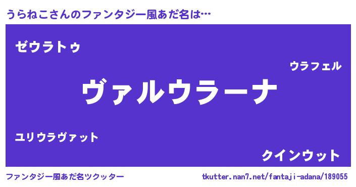 | 男性向けラノベタイトル風あだ名 | 『この素晴らしい世界にうらねこを!』 |