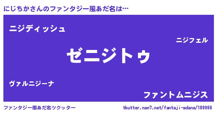 | ポケモン風あだ名 | 『ニジセウス』『ゼニニジ』 |