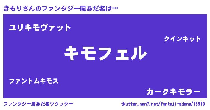 | 男性向けラノベタイトル風あだ名 | 『きもりに滅ぼされるだけの簡単なお仕事です』 |