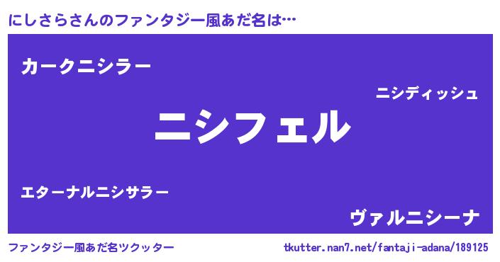 | 意味不明あだ名 | 『ペロリンにしさら』『永久保存にしさら』 |