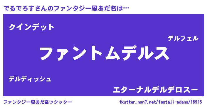| 男性向けラノベタイトル風あだ名 | 『でるでろすの嫁は女の子じゃないと思った?』 |