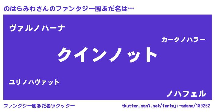 | 男性向けラノベタイトル風あだ名 | 『ノーゲーム・ノーノハラミワ』 |