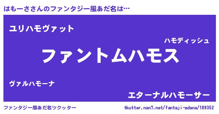 | 男性向けラノベタイトル風あだ名 | 『はもーさの嫁は女の子じゃないと思った?』 |