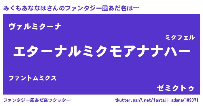 | 意味不明あだ名 | 『みくもあななはフォーエバー』 |