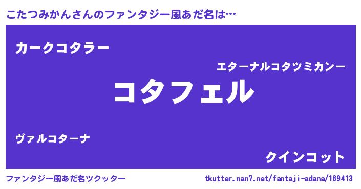 | 男性向けラノベタイトル風あだ名 | 『こたつみかんの憂鬱』 |