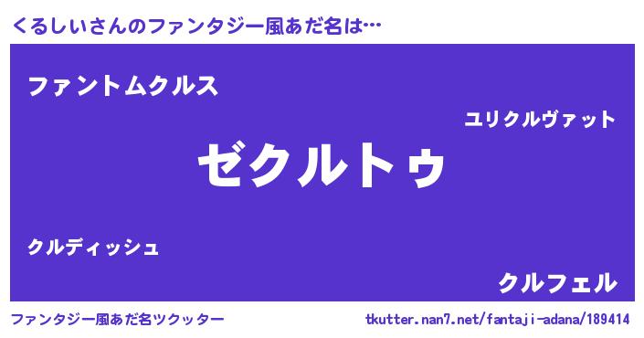| ヒーロー風カッコイイあだ名 | 『最強戦士クルシイ』『暗黒騎士クル』 |