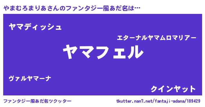 | 女子向けラノベタイトル風あだ名 | 『やまむろまりあ姫と円卓の騎士』 |