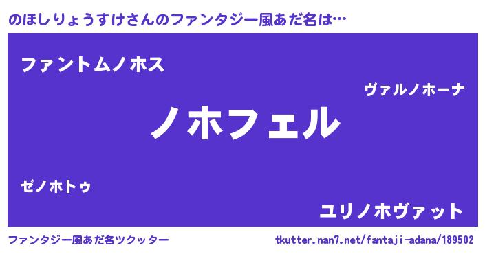 | 男性向けラノベタイトル風あだ名 | 『のほしりょうすけの憂鬱』 |