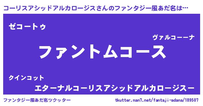 | 女子向けラノベタイトル風あだ名 | 『コーリスアシッドアルカロージス様がみてる』 |